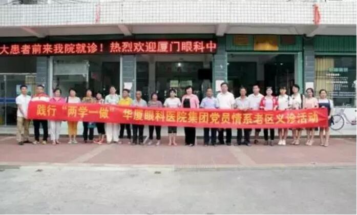 2016年6月25日,在紀(jì)念中國(guó)共產(chǎn)黨誕辰95周年之際,結(jié)合“兩學(xué)一做”,集團(tuán)黨委開(kāi)展“重走紅軍路,送醫(yī)到老區(qū)”活動(dòng)。華廈眼科醫(yī)院集團(tuán)黨委書(shū)記陳寶貴組織全體黨員到閩西革命老區(qū)龍巖連城新泉鎮(zhèn),慰問(wèn)當(dāng)?shù)匮奂怖щy戶,并為300多位眼疾患者做篩查,深受老區(qū)群眾贊譽(yù);