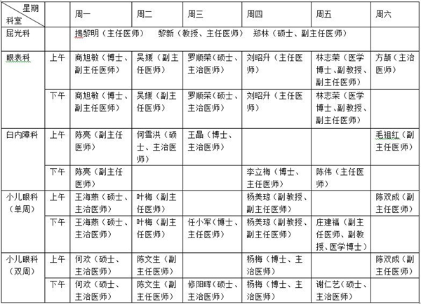 廈門大學(xué)附屬廈門眼科中心多點執(zhí)業(yè)醫(yī)師排班表