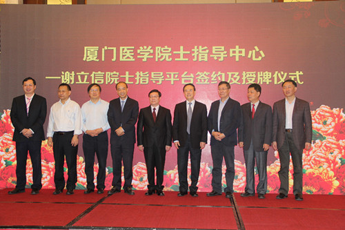 作為本次論壇的一個(gè)重要環(huán)節(jié):廈門醫(yī)學(xué)院士指導(dǎo)中心——謝立信院士指導(dǎo)平臺簽約授牌儀式在廈門市委市政府的關(guān)心支持,以及廈門市衛(wèi)生計(jì)生委員會的大力推動下如期舉行。