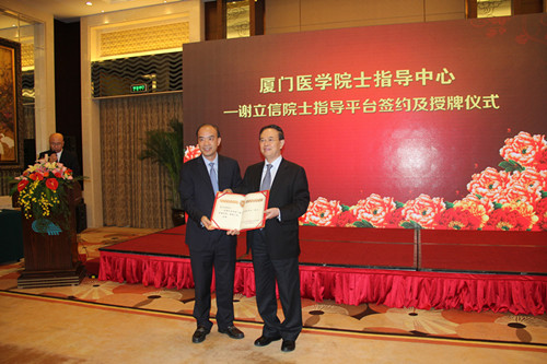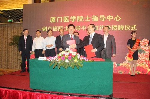 廈門市衛(wèi)生計(jì)生委副主任吳再陽與謝立信院士共同簽署協(xié)議