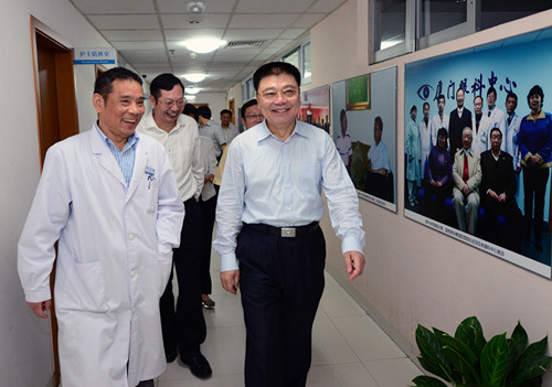 近日,省委常委、市委書記王蒙徽前往廈門眼科中心,看望了醫(yī)療團隊和接受眼角膜捐贈的康復(fù)患者。市領(lǐng)導(dǎo)鐘興國、國桂榮,衛(wèi)計委楊叔禹、洪豐穎、王挹青等領(lǐng)導(dǎo)隨同慰問。