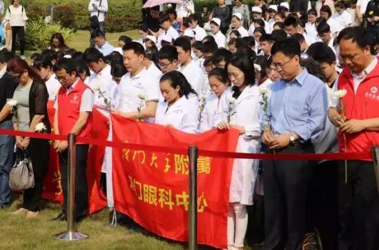 藍(lán)天下,清風(fēng)徐來,菊香陣陣。4月4日上午,在廈門海滄文圃山紀(jì)念園里,廈門市衛(wèi)計委、民政局、廈門市紅十字會、廈門眼科中心的工作人員與廈大醫(yī)學(xué)院、廈門醫(yī)學(xué)院的學(xué)生,以及捐獻(xiàn)者家屬、捐獻(xiàn)志愿者代表等300余人集體緬懷廈門市遺體、器官、眼角膜捐獻(xiàn)者,感恩他們的無私贈予,幫助生者能夠享受生命,擁有光明。