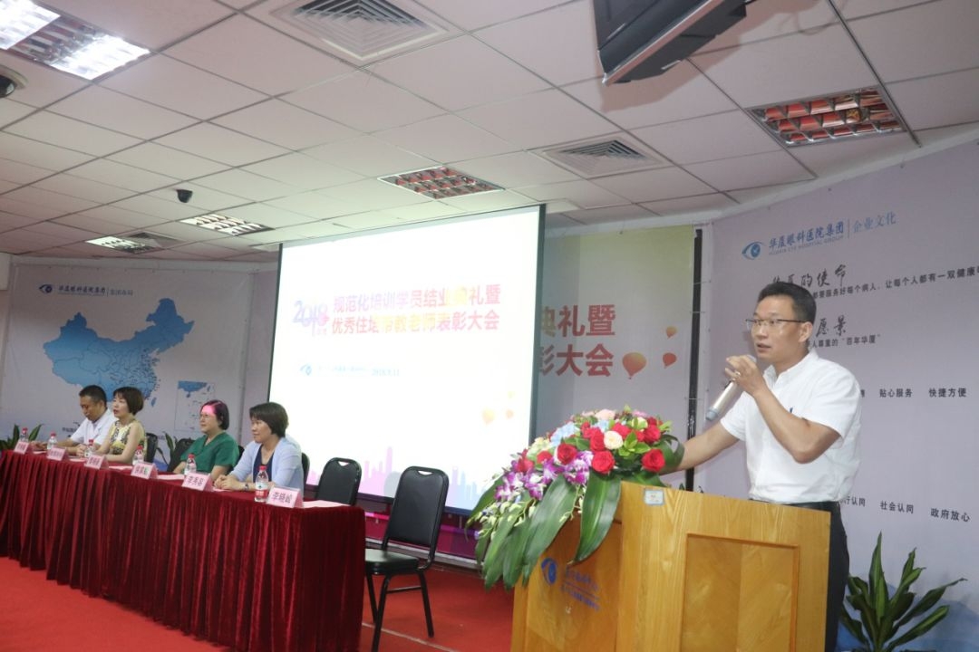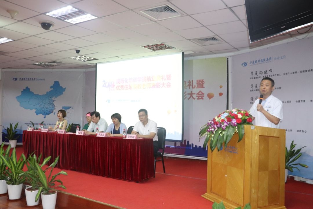眼科醫(yī)院集團(tuán)副總裁、廈門眼科中心執(zhí)行院長(zhǎng)李曉峰、廈門眼科中心業(yè)務(wù)院長(zhǎng)侯家敏、廈門眼科中心副總經(jīng)理姚鄭玲玲、廈門眼科中心特檢部主任李明翰博士,廈門眼科中心人力資源總監(jiān)李秀容以及優(yōu)秀帶教老師代表等出席典禮。