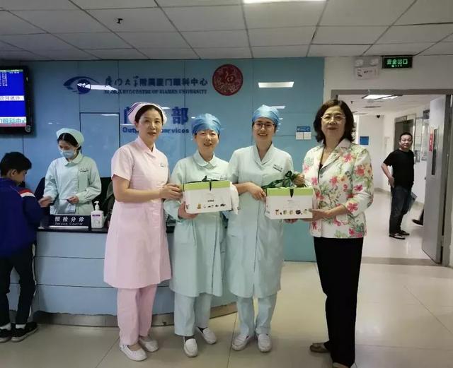 5月12日上午,廈門大學(xué)附屬廈門眼科中心工會主席陳逸恬、護(hù)理部主任許春麗及華廈眼科集團(tuán)護(hù)理管理中心洪清配業(yè)務(wù)副院長一行專程前往各科室,慰問正在臨床一線辛勤工作著的護(hù)士,為大家送上節(jié)日蛋糕,送上節(jié)日的問候和祝福。
