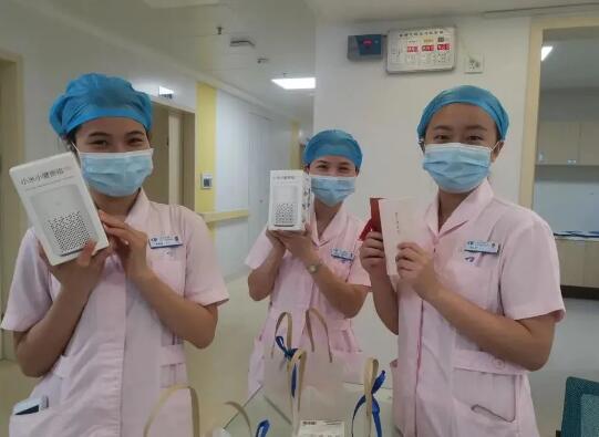 護(hù)理部主任許春麗表示:“今年因?yàn)橐咔榈脑颍o(hù)士們的工作壓力會(huì)更大,特別選擇了小愛同學(xué)智能機(jī)器人藍(lán)牙音響作為禮物,讓護(hù)士們?cè)诠ぷ髦喔玫姆潘尚那椤?rdquo;
