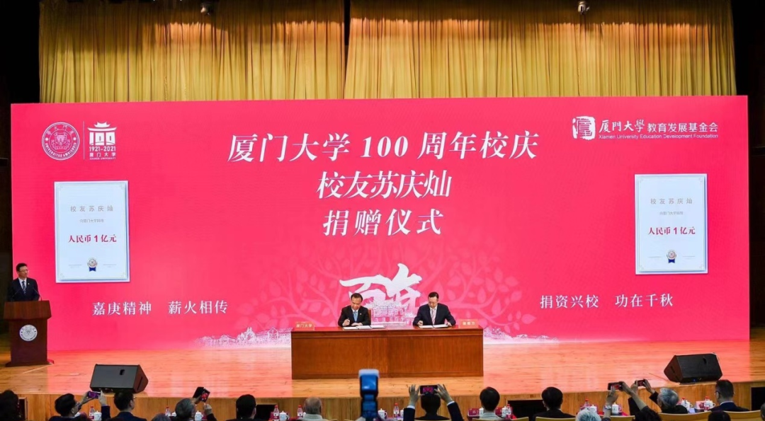 眼科醫(yī)院集團蘇慶燦董事長向廈門大學捐贈1億元。