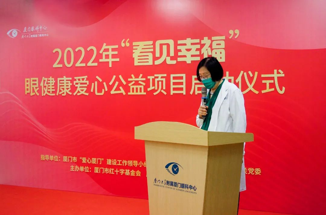 5月26日上午,“看見幸福”眼健康愛心公益項(xiàng)目在廈門大學(xué)附屬?gòu)B門眼科中心正式啟動(dòng)。該項(xiàng)目由廈門市“愛心廈門”建設(shè)工作領(lǐng)導(dǎo)小組辦公室、廈門市衛(wèi)生健康委員會(huì)機(jī) 關(guān)黨委共同指導(dǎo),廈門市紅十字基金會(huì)、廈門大學(xué)附屬?gòu)B門眼科中心聯(lián)合發(fā)起,是“愛心廈門”建設(shè)2022年度“十大愛心行動(dòng)”之一,也是深化拓展“愛心廈門”建設(shè)的一大“為民辦實(shí)事”舉措。