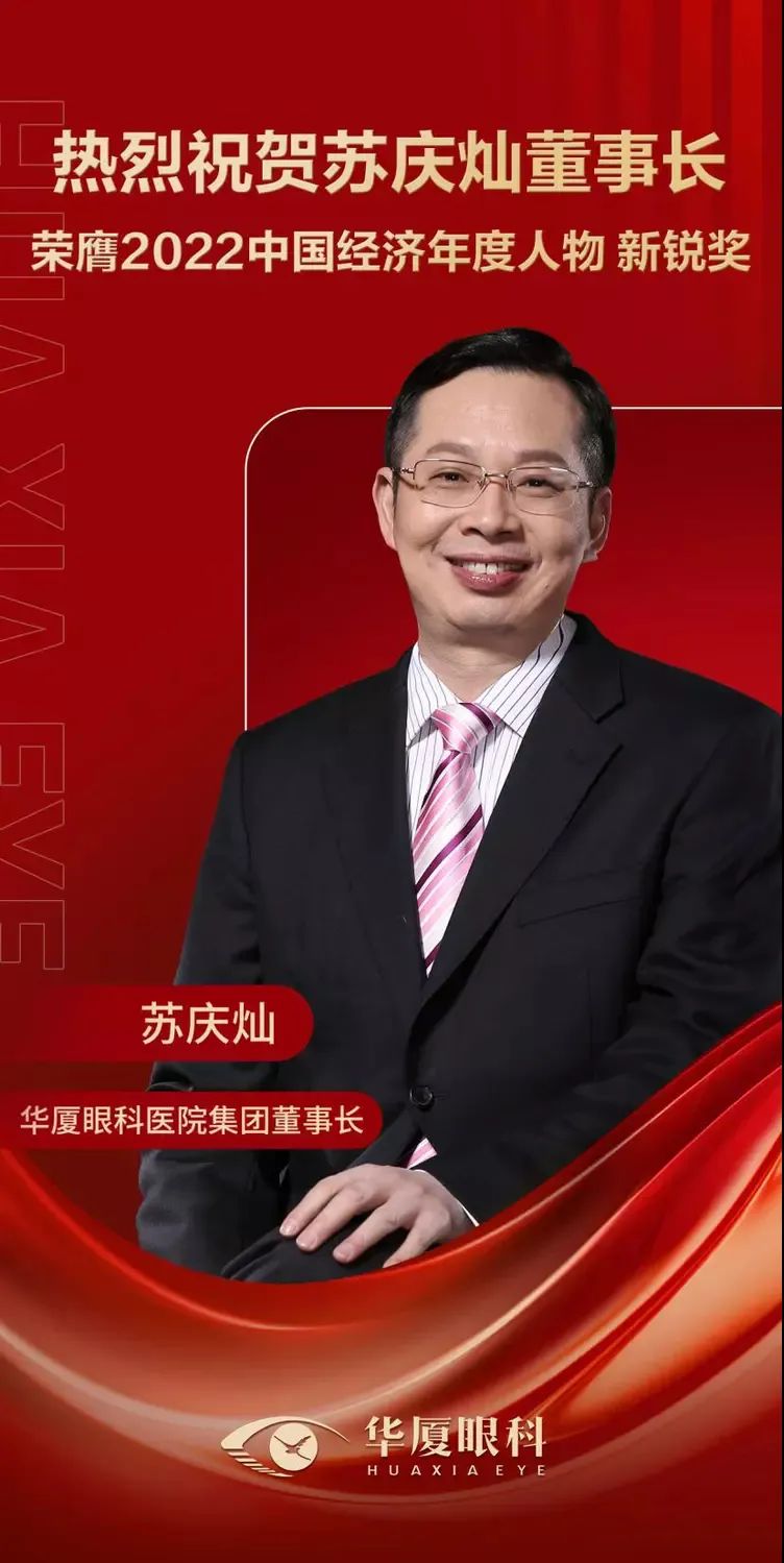 華廈眼科醫(yī)院集團董事長蘇慶燦榮獲“中國經(jīng)濟年度人物新銳獎”。