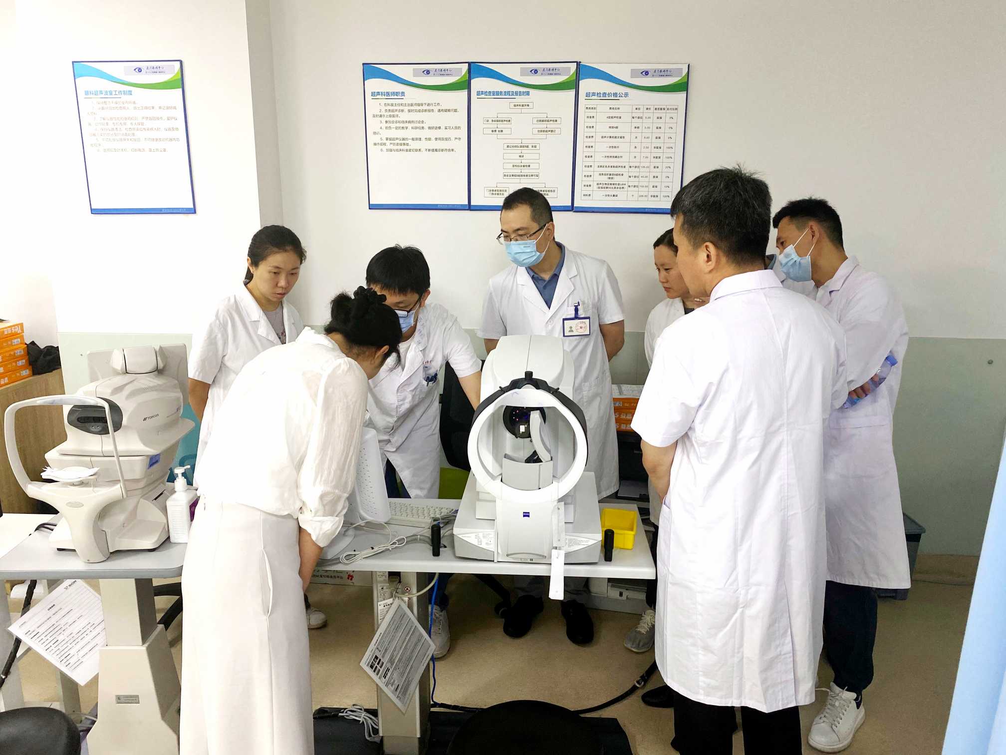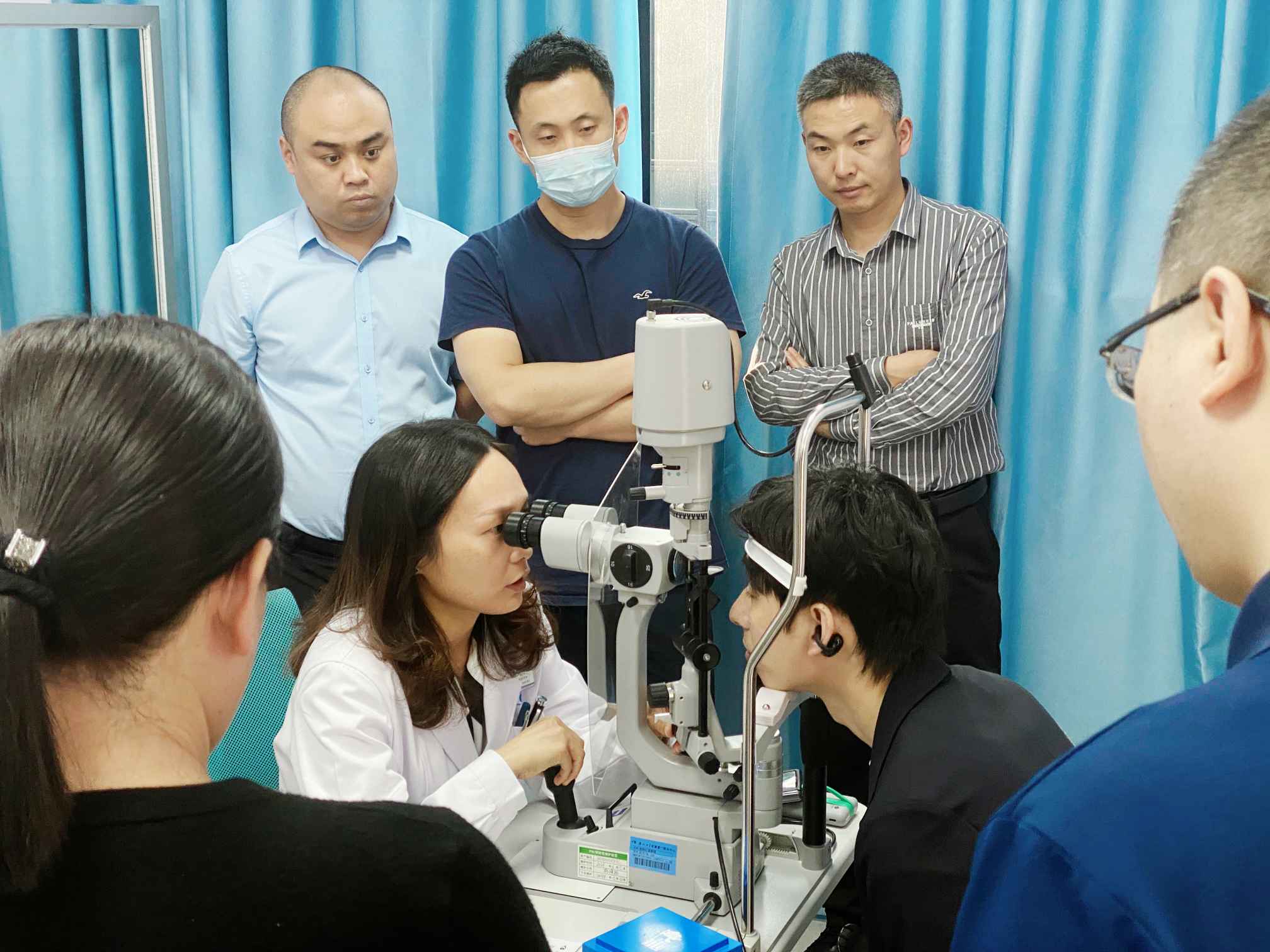 鞏固理論基礎(chǔ)之余,廈門眼科中心還組織參培醫(yī)師們到 門診觀摩 ,實地了解和學(xué)習(xí)ICL術(shù)前檢查和術(shù)后觀察處理流程,由史小玲主任為大家釋疑。