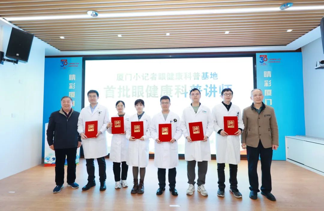現(xiàn)場(chǎng),何雪洪、李海波、胡欽瑞、王炎子、曾玲燕、林元耀等6名常年奮戰(zhàn)在廈門眼科中心臨床診療一線的優(yōu)秀醫(yī)生,受聘成為廈門小記者眼健康科普基地首批眼健康科普講師。未來(lái),他們將發(fā)揮各自專長(zhǎng),進(jìn)校園開展眼健康科普行動(dòng),讓更多青少年了解愛眼護(hù)眼常識(shí)。