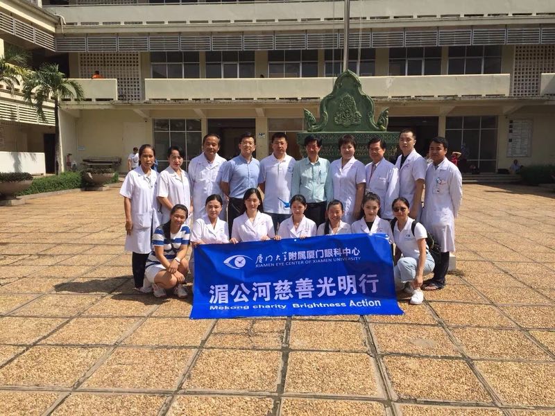 2016年10月21日,科室跟隨柬埔寨光明行先遣醫(yī)療組冒著臺風(fēng)天轉(zhuǎn)道啟程前往金邊,為當(dāng)?shù)?00多名貧困白內(nèi)障患者免費(fèi)施行手術(shù)。用充滿愛與責(zé)任的人文情懷澆灌中柬“友誼之花”。