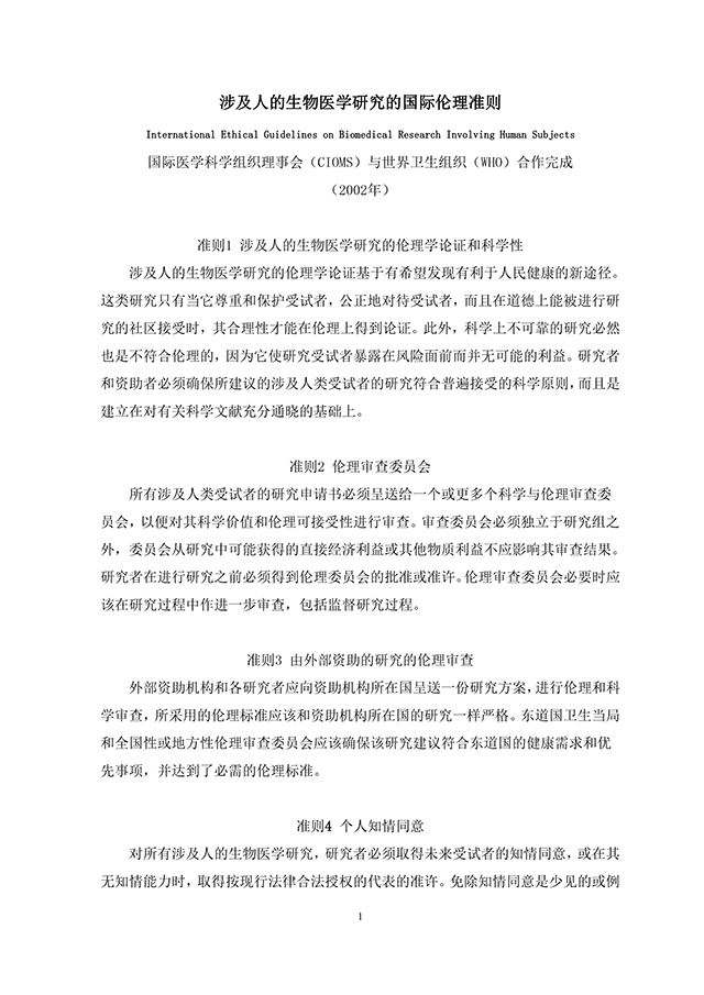 涉及人的生物醫(yī)學(xué)研究的國際倫理準(zhǔn)則